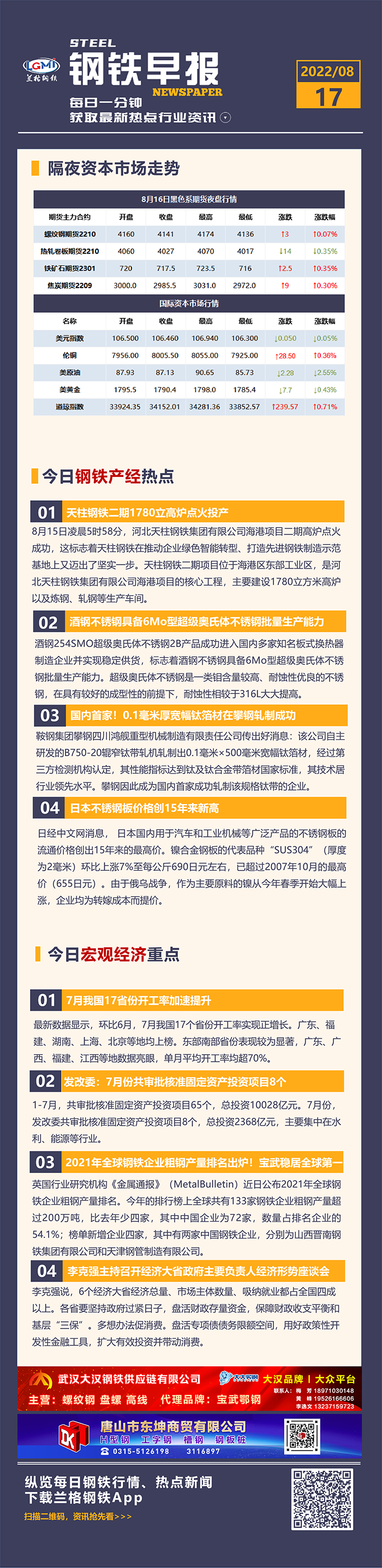 - 8月16日钢市新闻早知道2022-08-16