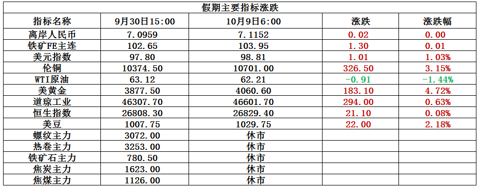 10月9日钢市早知道:假期黄金价格疯涨 铜价飙升 钢铁等行业碳排放配额方案将出 美股创历史新高后回落