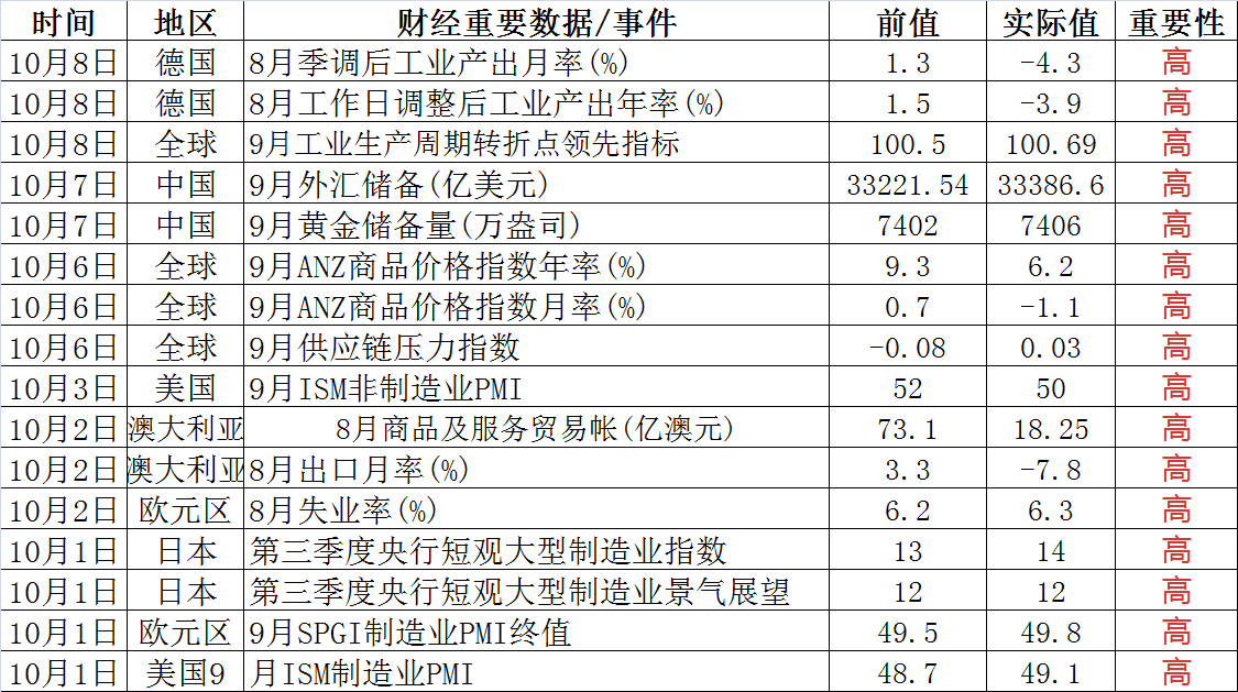 5、德国8月季调后工业产出环比降4.3%,为2022年3月以来最大降幅,预期降1.00%。