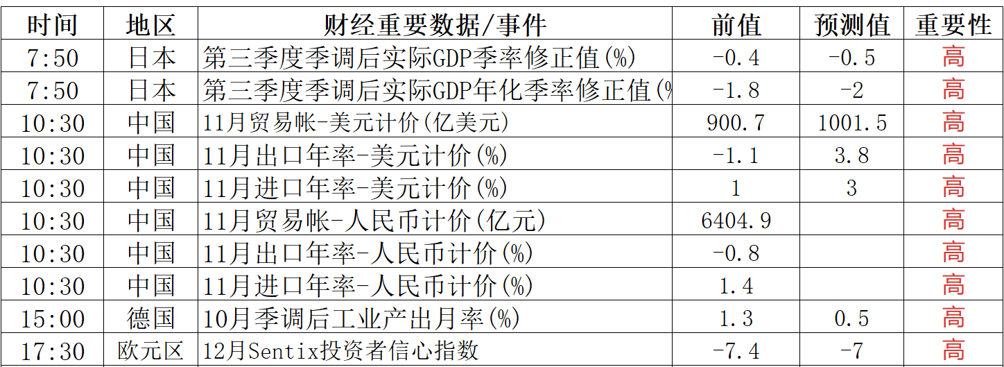 财经重要数据/事件一览