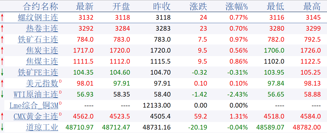 夜盘黑色商品总体收涨,幅度有限,主力合约涨幅都未超过1%。由于夜盘白银、铜价继续创历史新高,沪铜主力涨破10万元大关,带动工业品指数走强,市场情绪被提振。从螺纹和热卷两大品种走势来看,盘面走势并不弱,上周五适当回撤后顶住下跌压力,若多头情绪继续升温,仍有可能从盘面上展开反弹攻势,只是上方空间能有多大,要看利元旦前后利多条件能给到何种程度。消息面,全国财政工作会议12月27日至28日在北京召开,2026年继续实施更加积极的财政政策。参考运行区间:螺纹05合约3091-3168,热卷05合约3250-3332。