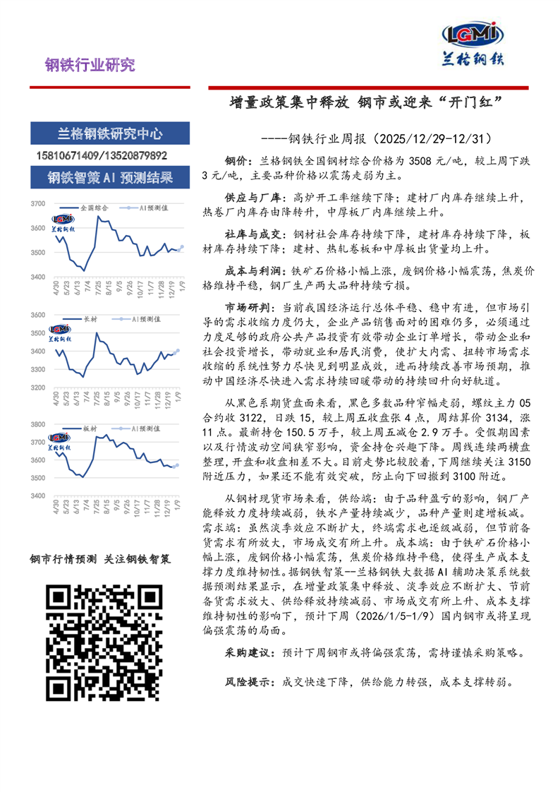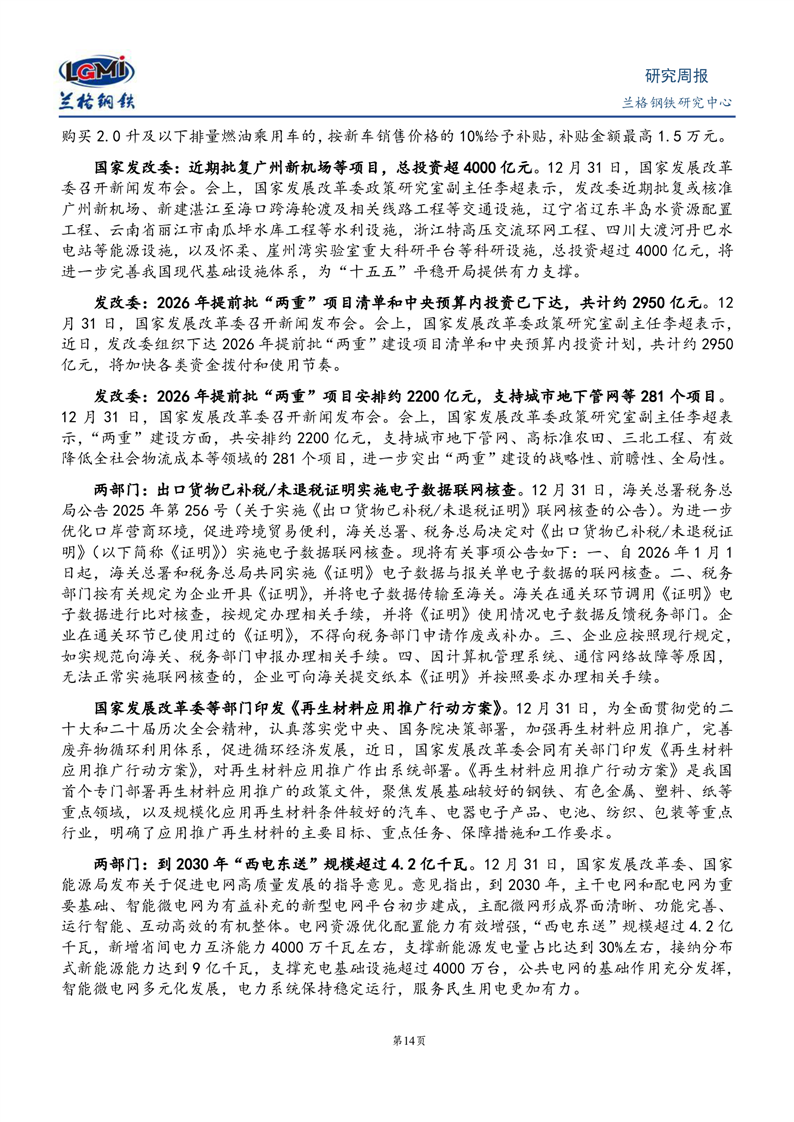 兰格钢铁周报-增量政策集中释放 钢市或迎来“开门红”