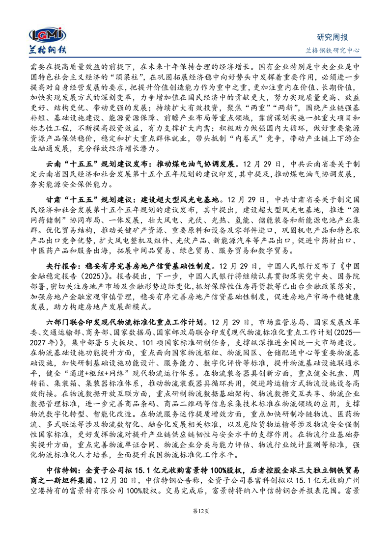 - 钢铁综合研究月报2026年1月刊2025-12-30