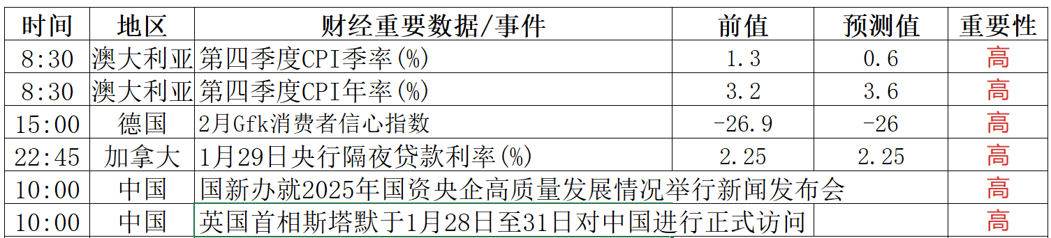 11、为期两天的美联储议息会议召开。外界普遍预期,美联储料将把基准利率维持在当前区间。本次会议不会发布新的经济和政策预期,但市场目前预计,美联储将暂停进一步降息至5月之后,届时降息举措大概率由鲍威尔的继任者推动。