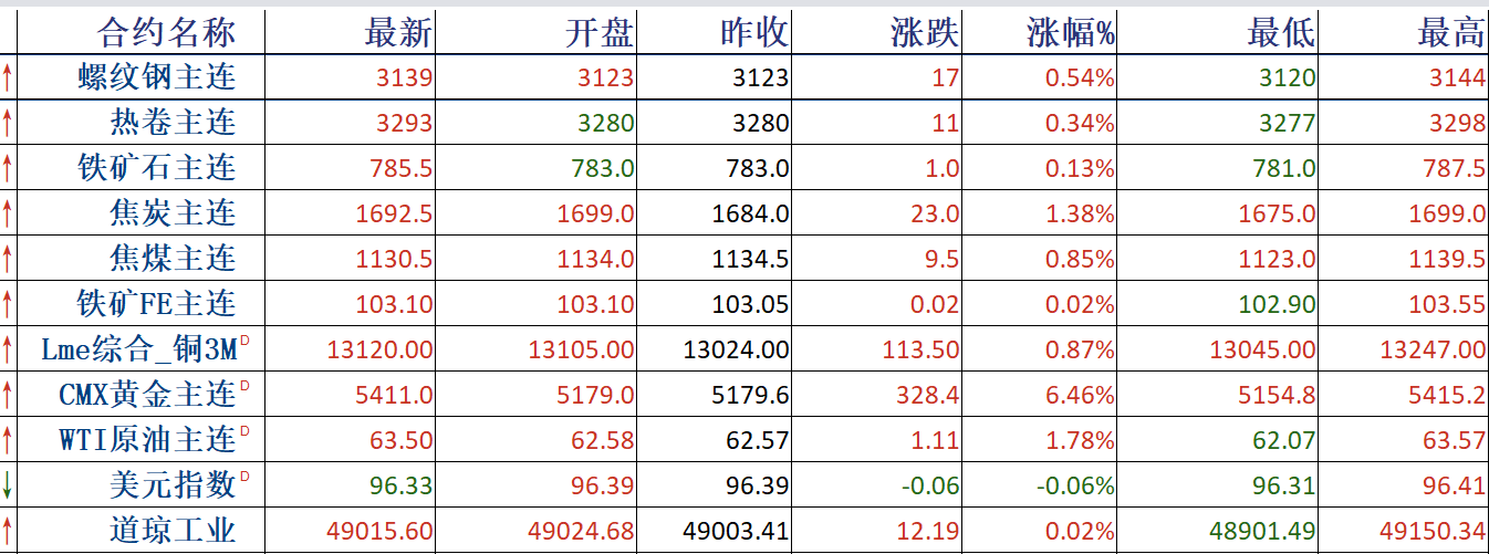 - 1月26日钢市早知道:黑色商品涨跌互现 关于推进城际铁路健康可持续发展的意见发布 山西大部分地区降雪2026-01-26