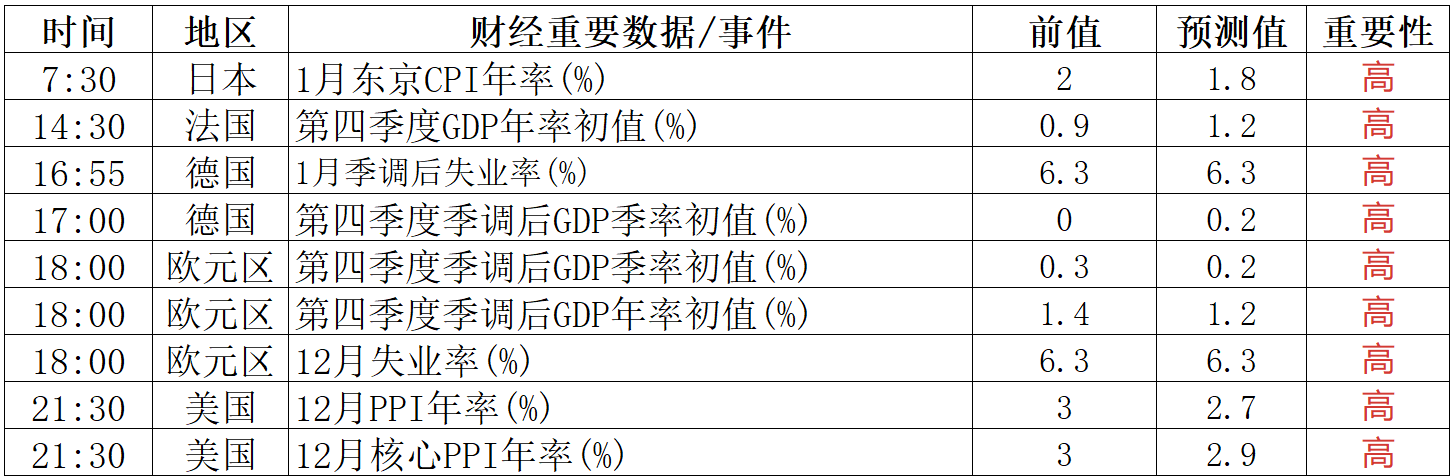 财经重要数据/事件一览