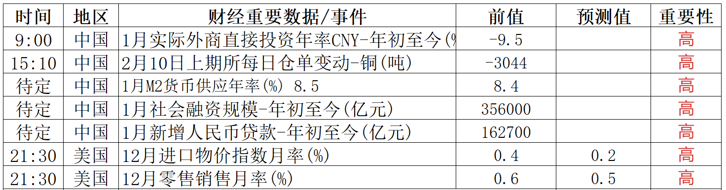 财经重要数据/事件一览