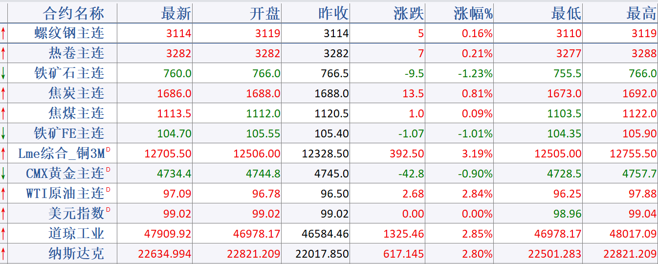 - 4月3日钢市早知道:夜盘黑色商品继续收跌 WTI原油晚间暴涨站上110美元 伊朗袭击了海湾国家钢铁和铝材设施..2026-04-03