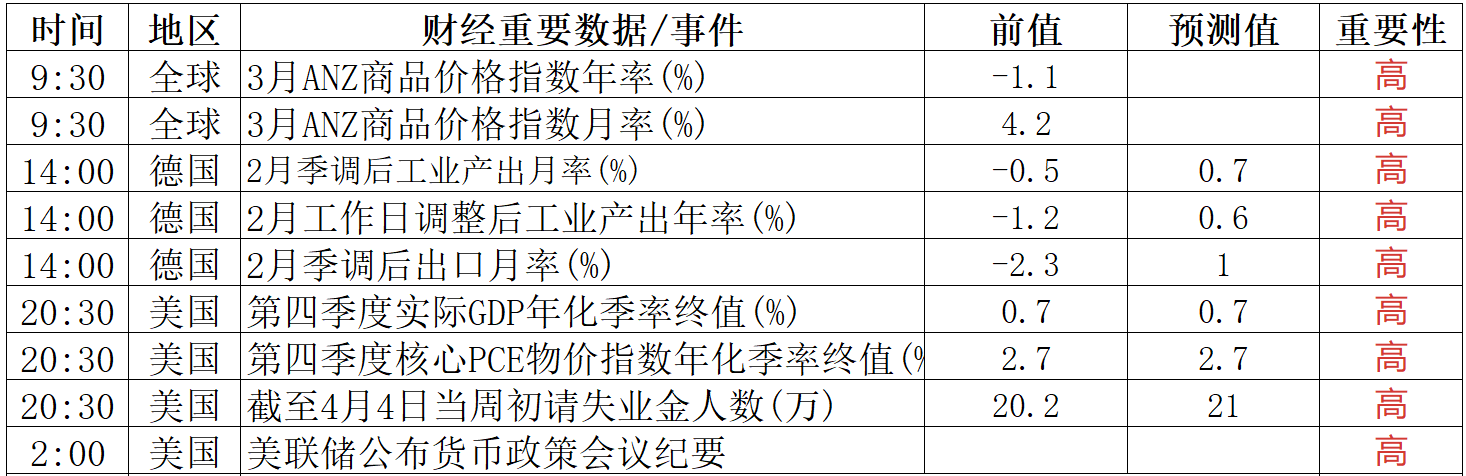 财经重要数据/事件一览
