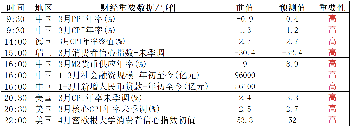财经重要数据/事件一览
